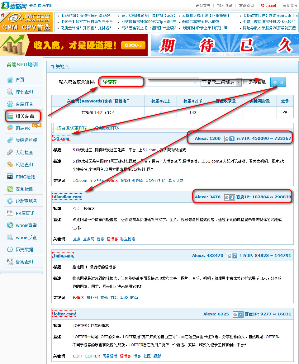 一、挖掘竞争对手的资源 站长们喜欢用domain:域名,来查到一些关于这个域名对应站点的外链。虽然通过这个命令能查到外链资源,但是这样查的话,不能直接的看出这个竞争对手的外链广泛度怎样,质量怎样。所以我们还可以通过一些seo优化辅助工具来执行