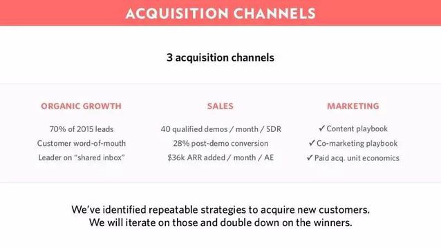 你的市场推广策略应该已经在小范围内得到了验证,你也应该已经确定了最有效的客户获取渠道。这里你需要回答: