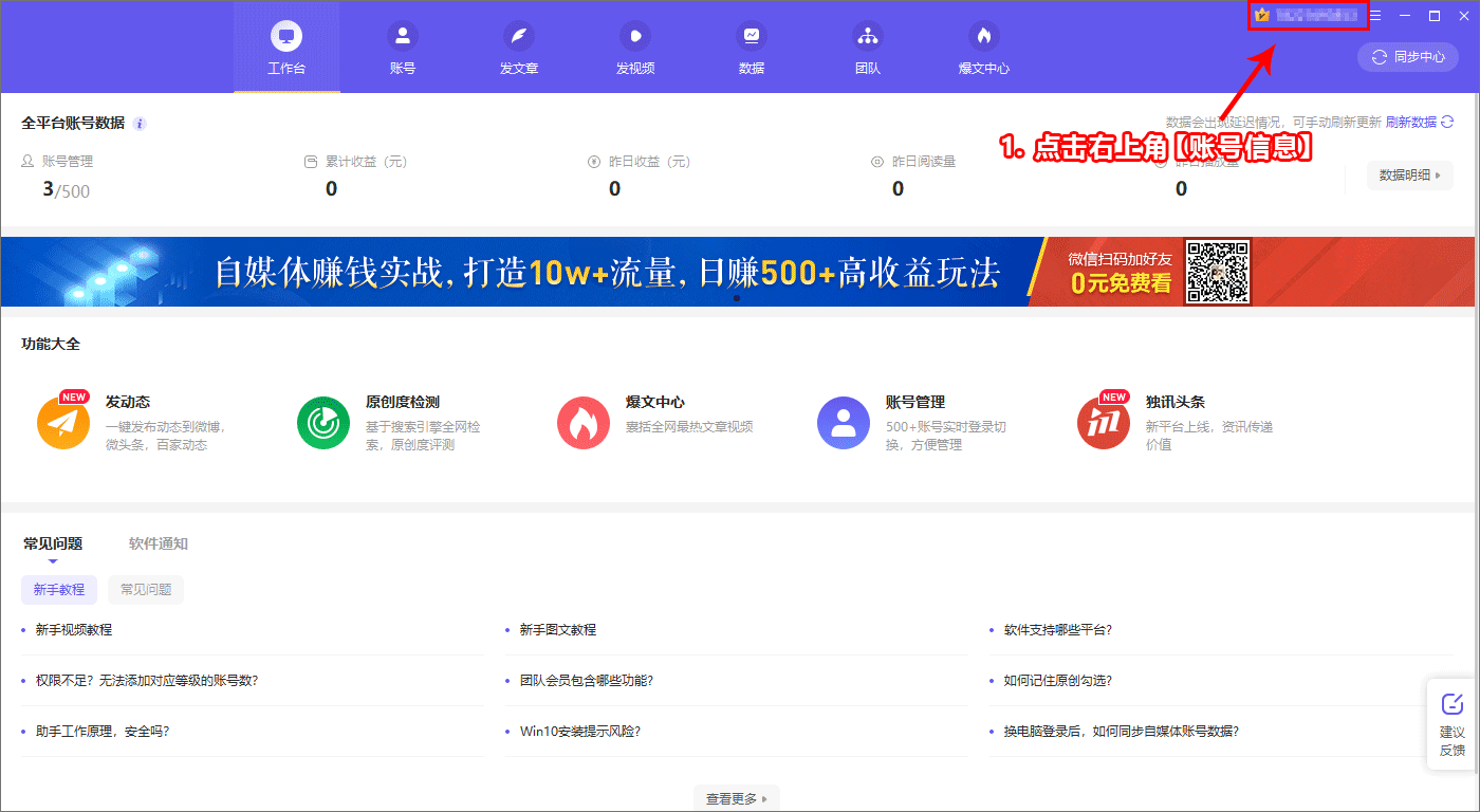 点击右上角【同步中心】即可看到文章、视频、动态发布成功和同步成功记录。