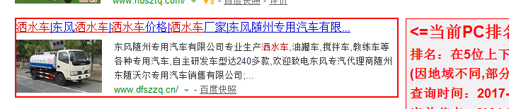 网站无排名,一切等于零,在好看的网站没有排名,没有流量也是白搭,只有我们网站的关键词越来越多的排到百度的首页,排到百度前三,在可以带来大量的流量才有几处谈转化率。在这篇文章中我们来一起谈谈一个洒水车的网站优化成功案例。通过此站,我们来说一下网站优化过程中需要注意的一些细节。