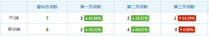 这个统计的是本站有指数的关键词前100名排名情况。由此可见网站的关键词数量还是不少的,虽然客户只做了三个关键词,但是整站优化带来的效益是很明显的。