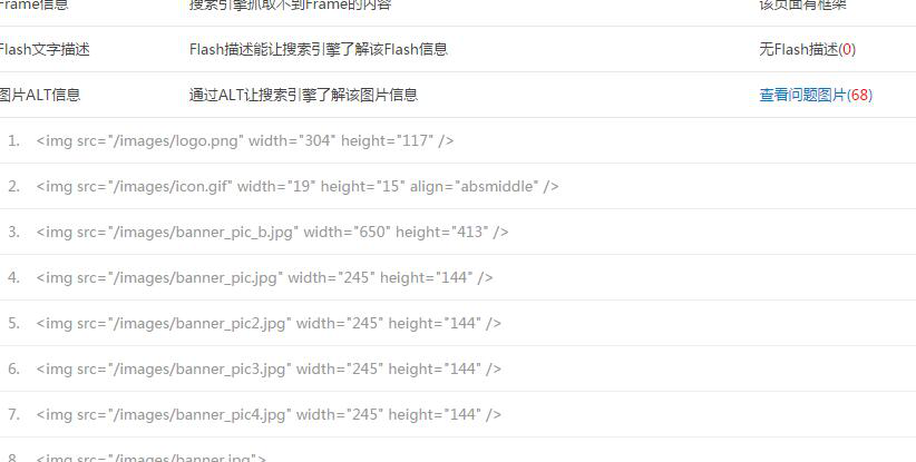 1.网站ALT检测,网站首页存在大量未添加alt的图片,不利于百度抓取,所以增加alt为内容标题。